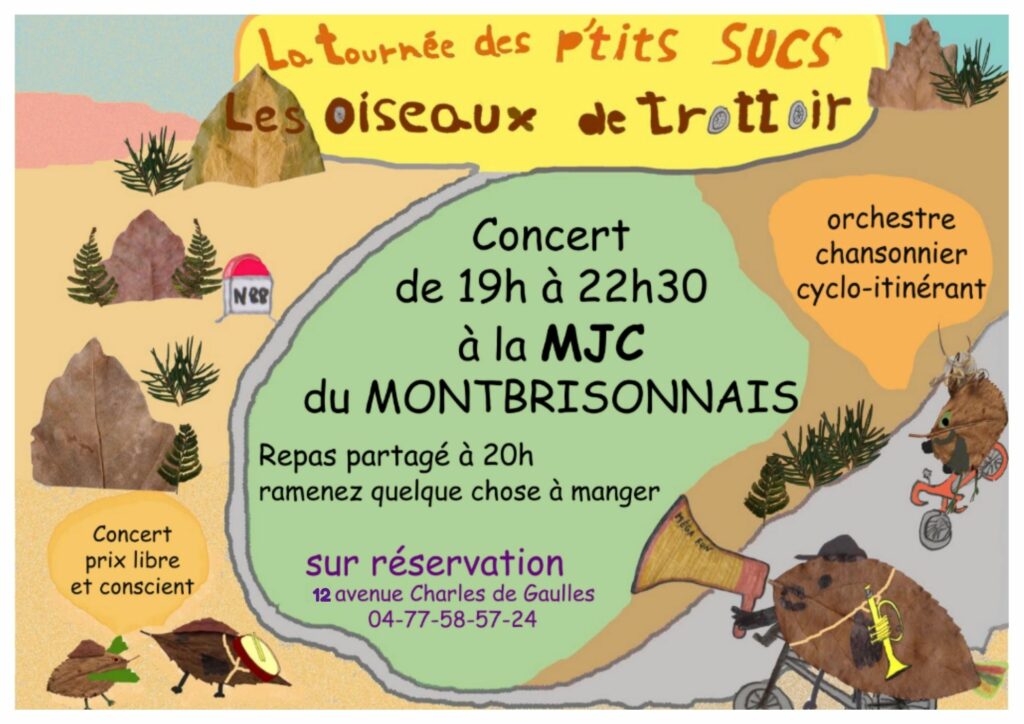 Dans le cadre de la tournée stéphanoise “La tournée des P’tits Sucs”, une vingtaine de ces musicien·nes arriveront à vélo jusqu’à la MJC du Montbrisonnais. Leur concert promet un voyage musical où se croisent chansons populaires orchestrées et compositions originales : de Brassens à Eminem, il n’y a qu’un coup de pédale avec Les Oiseaux de Trottoir !