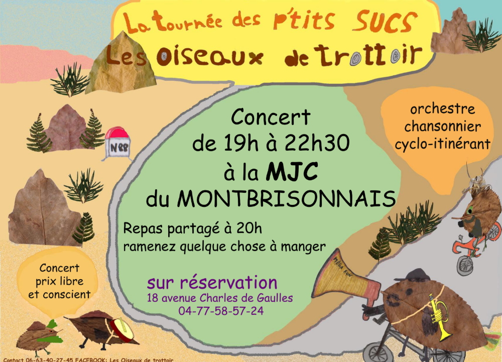 Dans le cadre de la tournée stéphanoise “La tournée des P’tits Sucs”, une vingtaine de ces musicien·nes arriveront à vélo jusqu’à la MJC du Montbrisonnais. Leur concert promet un voyage musical où se croisent chansons populaires orchestrées et compositions originales : de Brassens à Eminem, il n’y a qu’un coup de pédale avec Les Oiseaux de Trottoir !