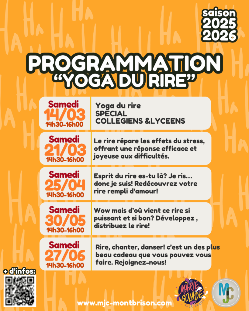 Grâce à des exercices simples et accessibles, vous apprendrez à libérer vos tensions et à booster votre énergie par le rire. Un moment de convivialité et de détente, où l’on rit sans raison, pour retrouver le plaisir de vivre pleinement. Une pratique bénéfique pour la santé mentale et physique, idéale pour apporter légèreté et joie au quotidien !