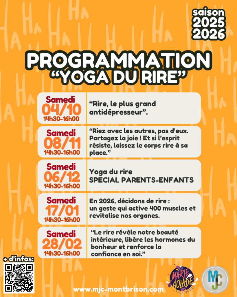 Partagez un moment complice et joyeux avec votre enfant grâce à cet atelier de yoga du rire animé par Marie-Pierre Savel. À travers des exercices simples et ludiques, parents et enfants apprennent ensemble à libérer les tensions, à se détendre et à recharger leur énergie… en riant !