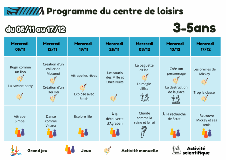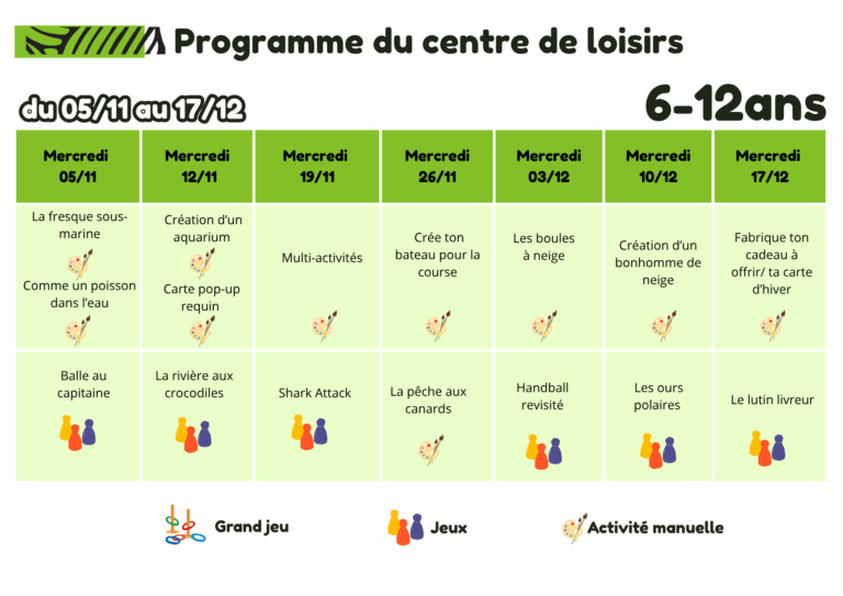 Les activités sont variées et ludiques : ateliers manuels, créations artistiques, jeux sportifs, découvertes en tous genres… Chacun peut explorer, apprendre et s’amuser à sa manière !