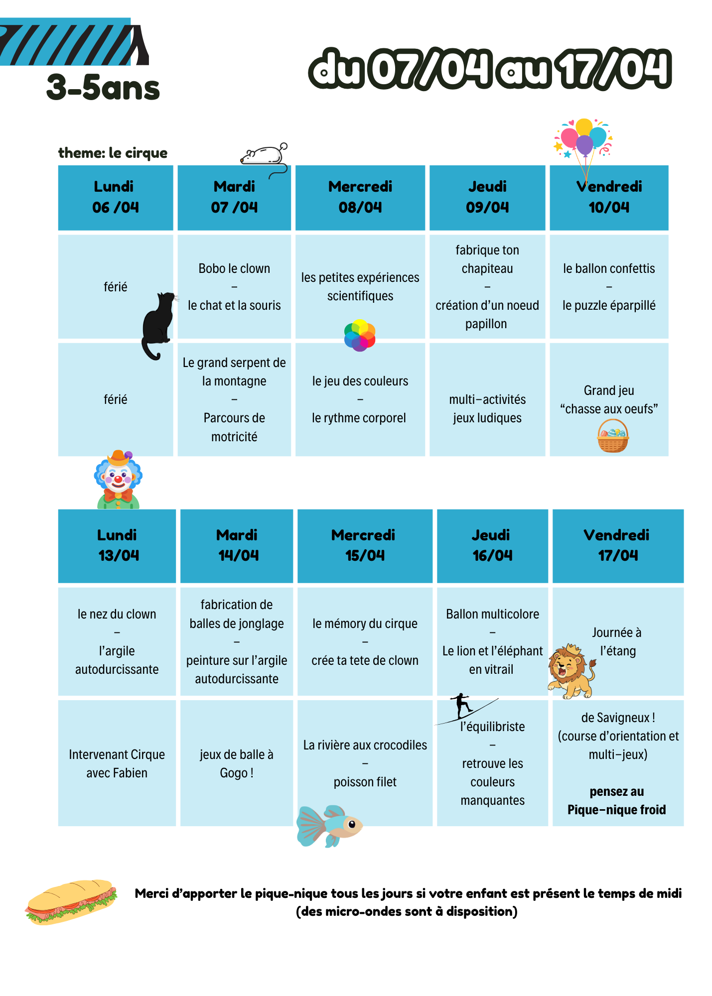 Il n’y a aucune obligation d’inscription à la semaine : vous pouvez adapter les journées selon vos besoins.